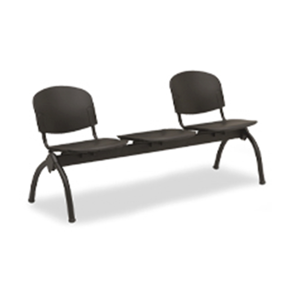 BANCA ITALIANA DE 2 PLAZAS CON MESA, ACABADO POLIPROPILENO CON DISEÑO ERGONÓMICO, ESTRUCTURA EN ACERO TUBULAR REDONDO PINTADO EN COLOR GRIS O NEGRO.