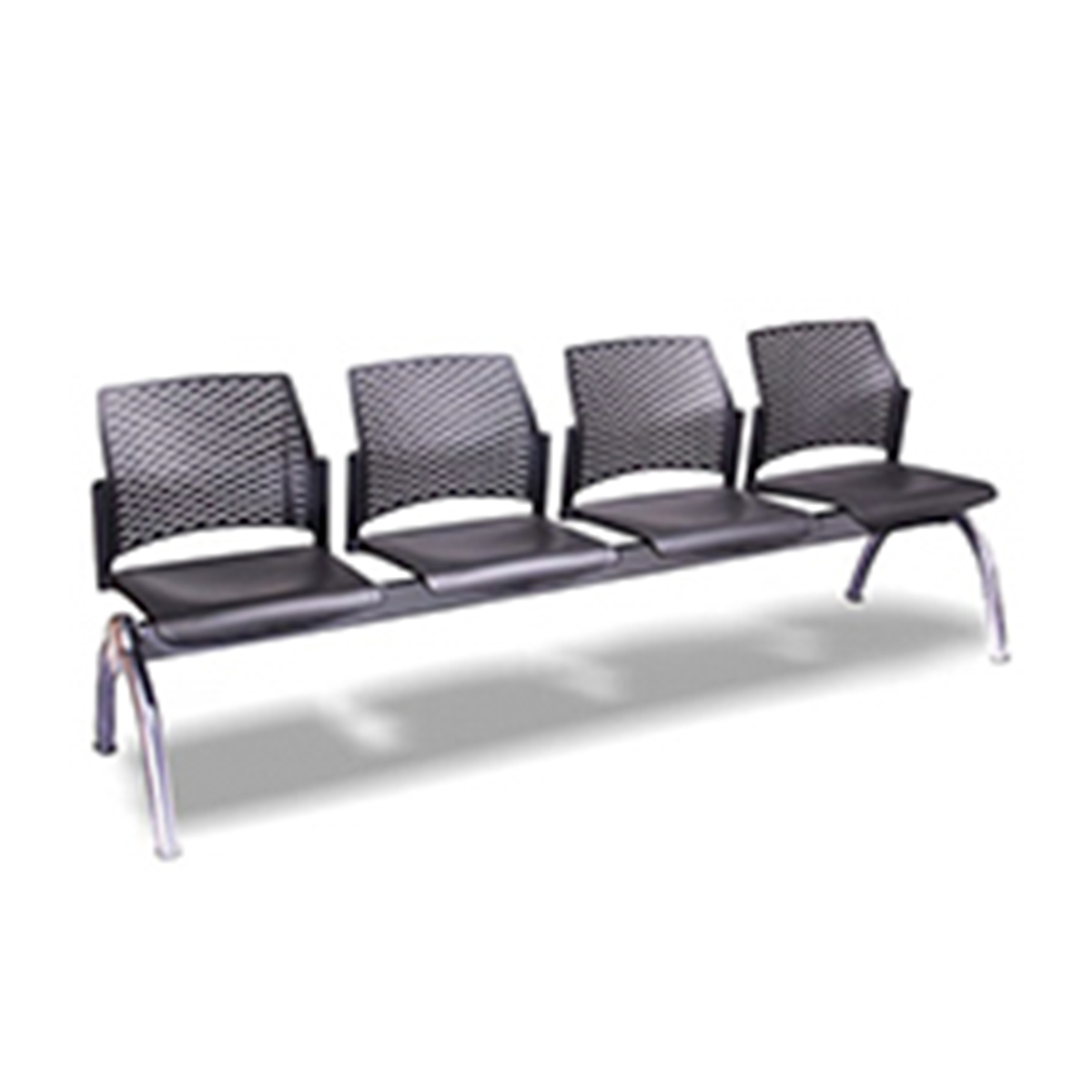 BANCA REWIND DE 4 PLAZAS, ACABADO EN POLIPROPILENO CON RESPALDO RETICULADO, ESTRUCTURA EN ACERO TUBULAR REDONDO CROMADA.
