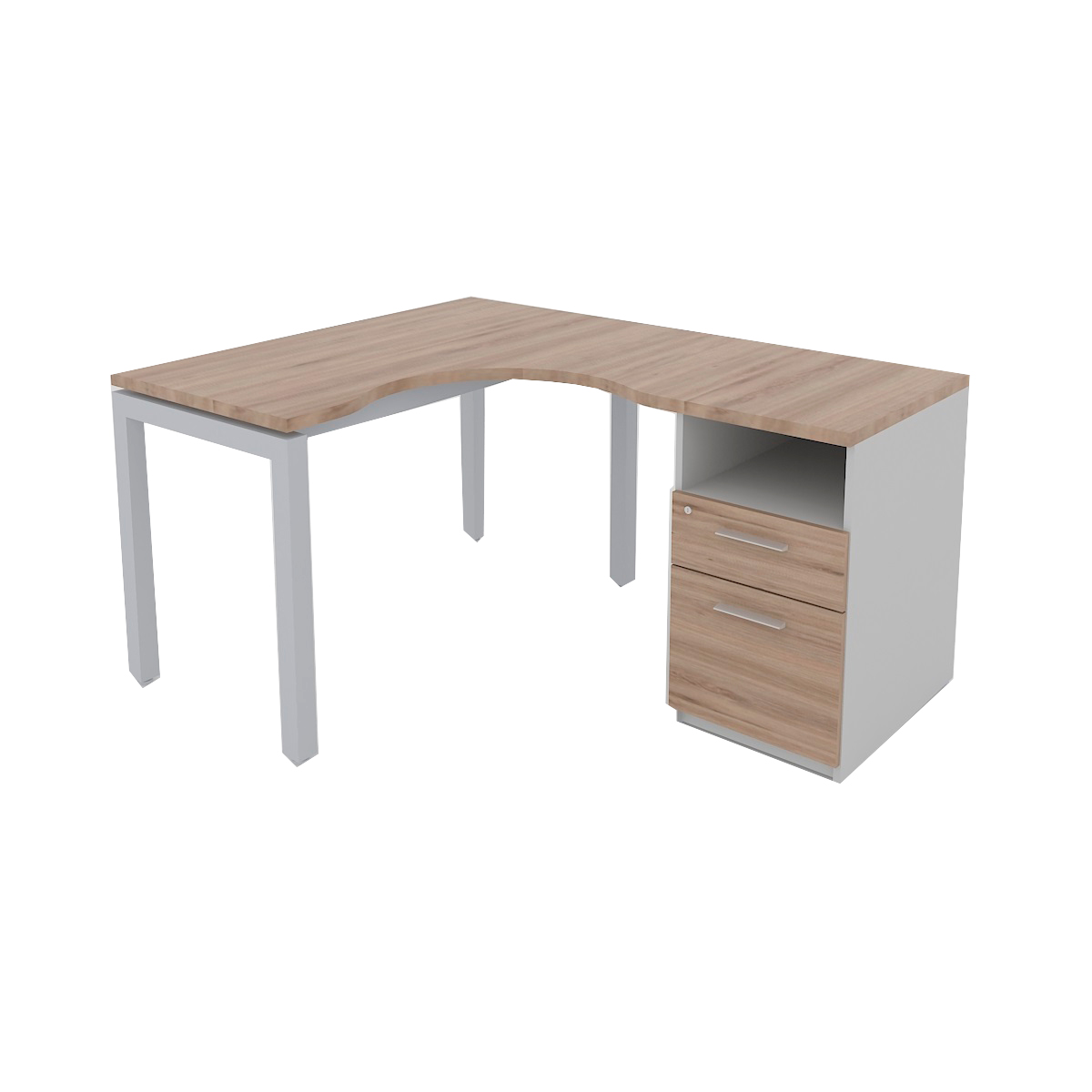 ESCRITORIO “J” CUBIERTA CALIBRE 28 MM, CON PEDESTAL, PATA METÁLICA TIPO U, DE FRENTE: 150, FONDO: 120, ALTO: 75 (DERECHO)