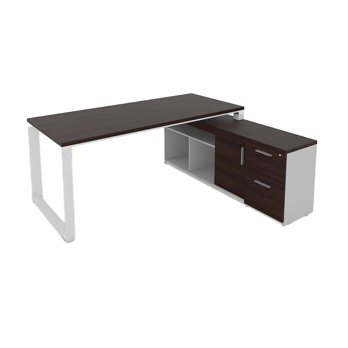 MÓDULO DERECHO SQ WHITE, FRENTE: 180, FONDO: 80, ALTO: 75 CM FALDÓN METÁLICO, CON CREDENZA, LARGO: 160, FONDO: 40, ALTO: 63 CM, CUBIERTA DE MELAMINA CALIBRE 28 MM