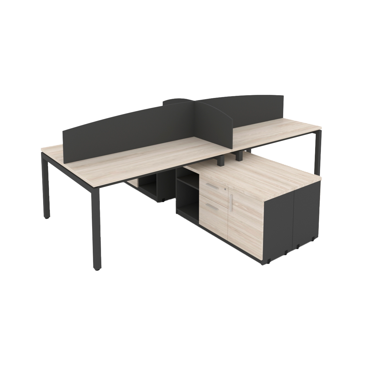 MODULO DOBLE T CUBIERTAS CALIBRE 28 MM CON CREDENZA SOPORTE DE 2 CAJONES, 1 PUERTA Y LIBRERO ABIERTO, PATA METÁLICA TIPO U, FRENTE: 300, FONDO: 280, ALTO: 75 CM