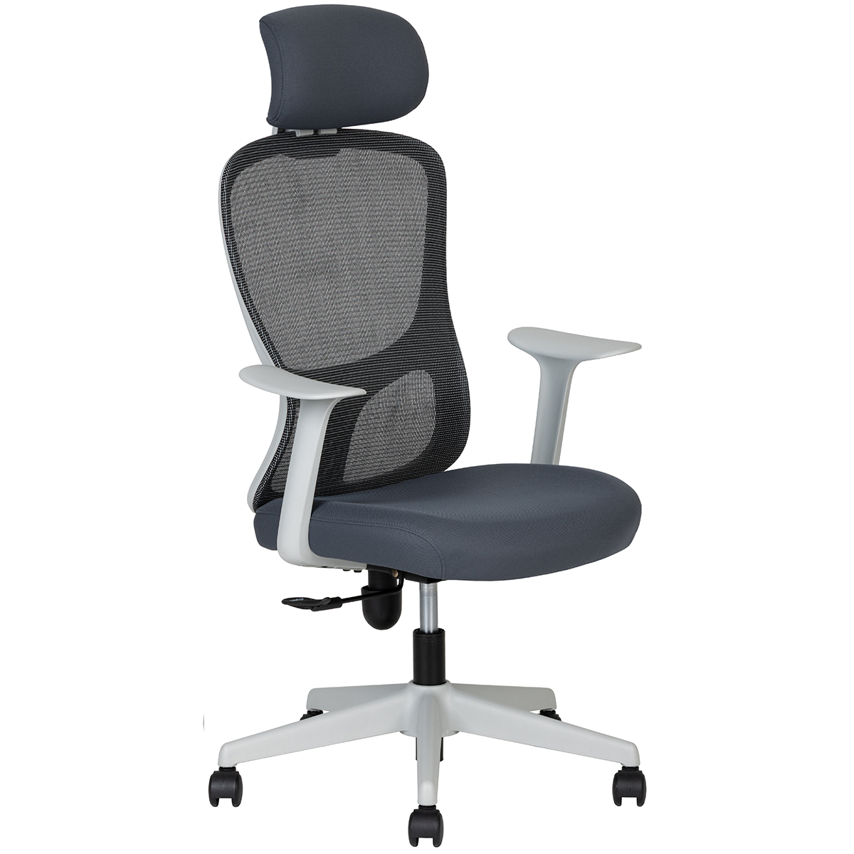 SILLON EJECUTIVO RESPALDO ALTO, CON REGULACION DE TENSION, BASE NYLON, MALLA Y ASIENTO GRIS