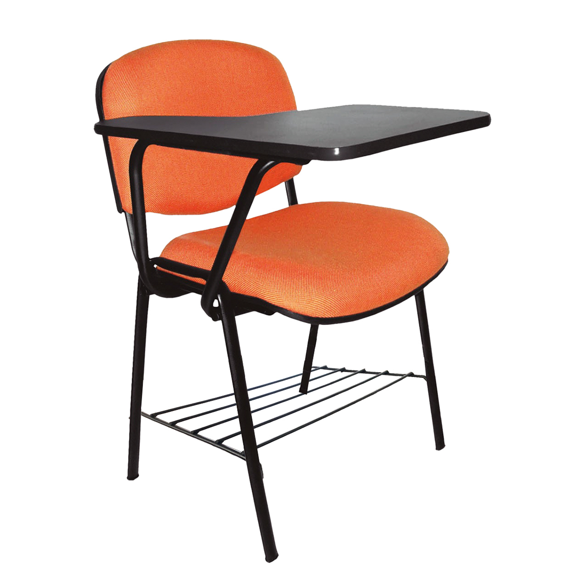 PUPITRE C/PARRILA, ASIENTEO/RESPALDO TAPIZ TELA, PALETA MELAMINA NEGRA